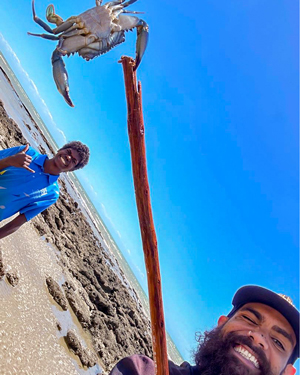 Mentor Dylan teaching Marcius how to hunt for crabs